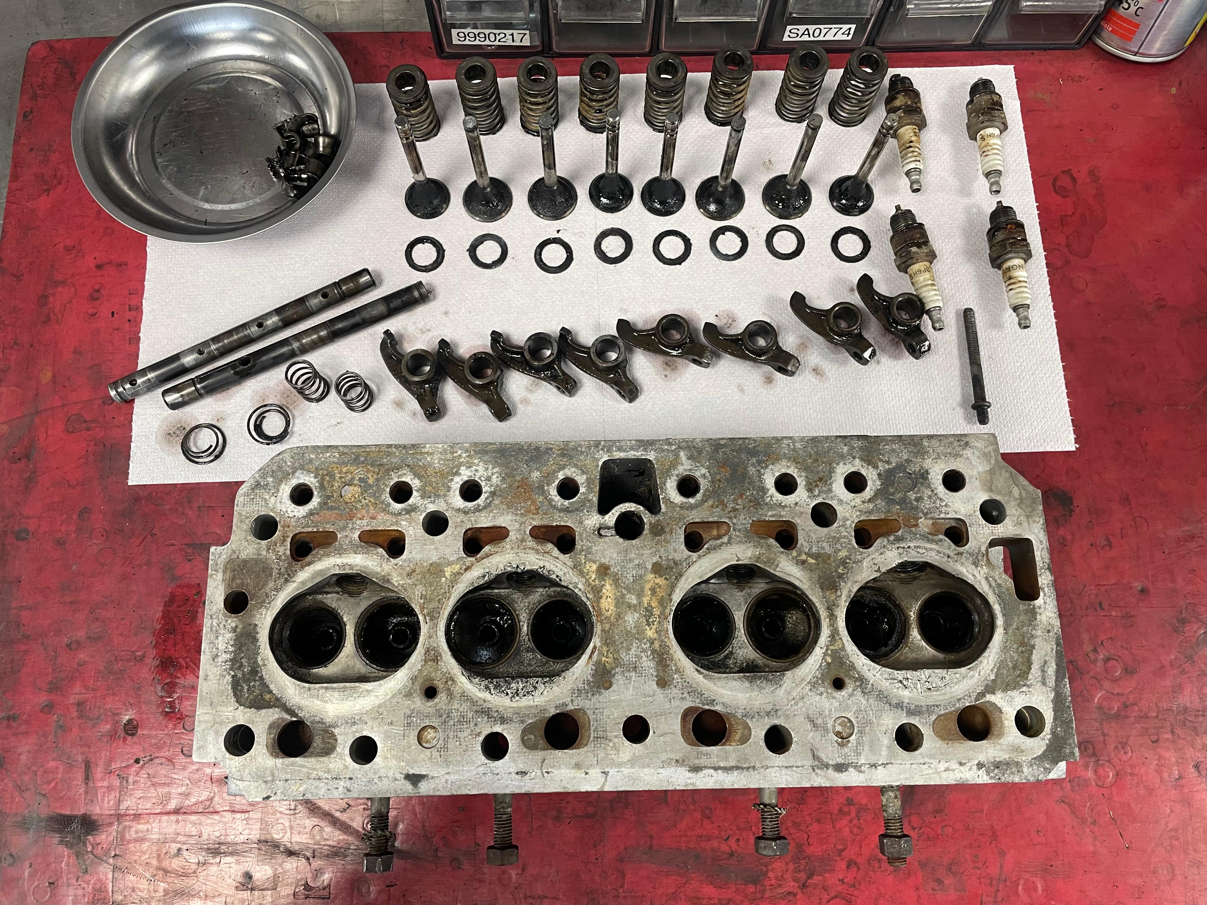 Rectification culasse, usinage sièges et soupapes, remplacement guides, contrôle et réassemblage.